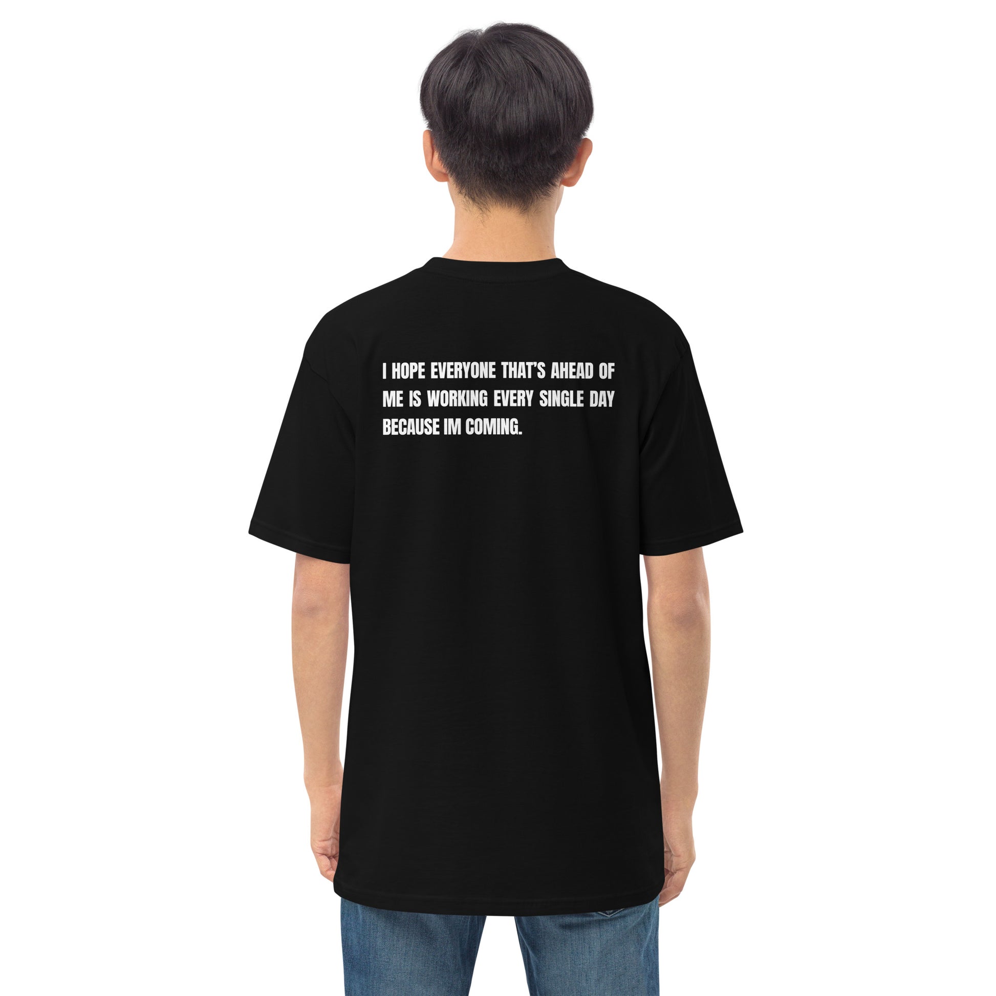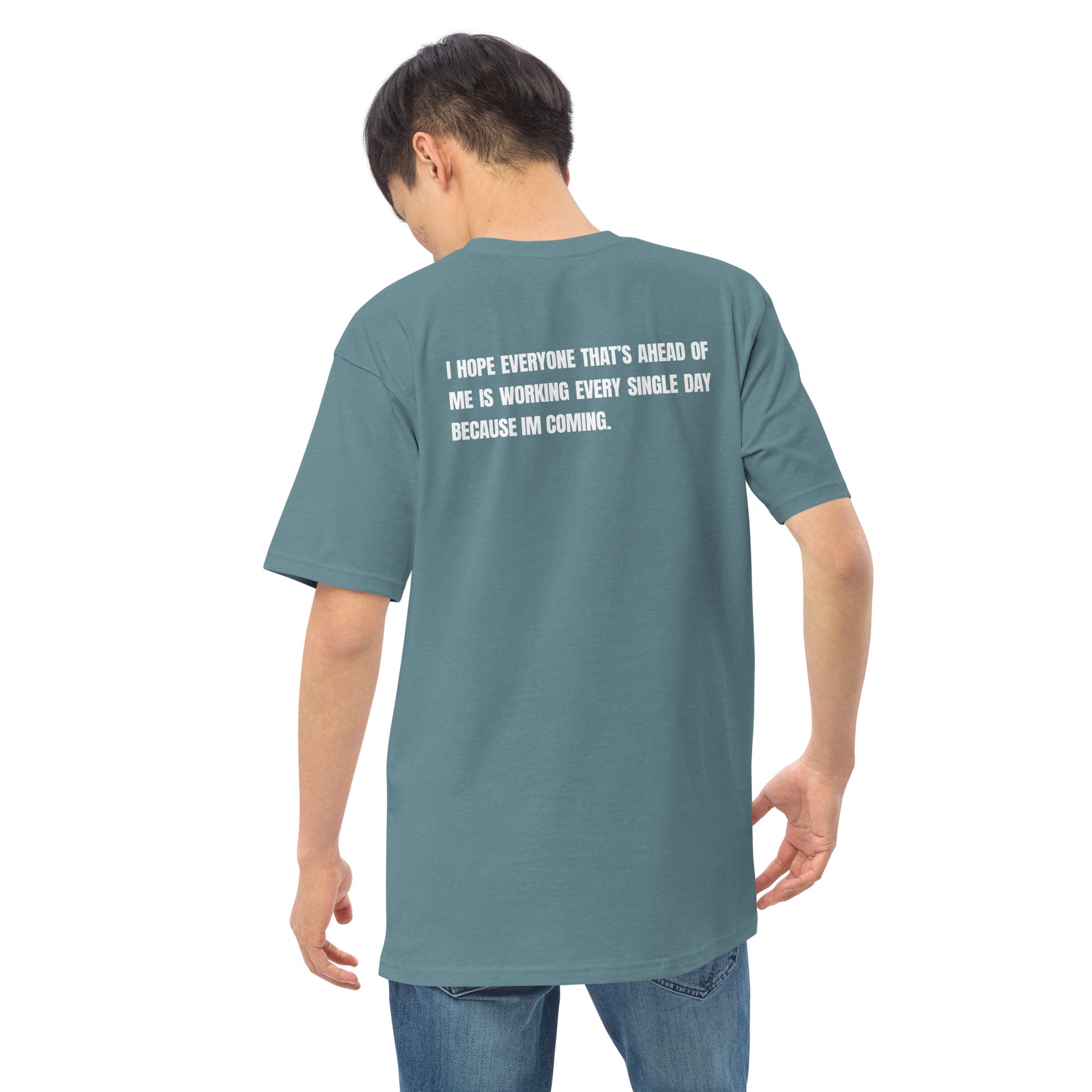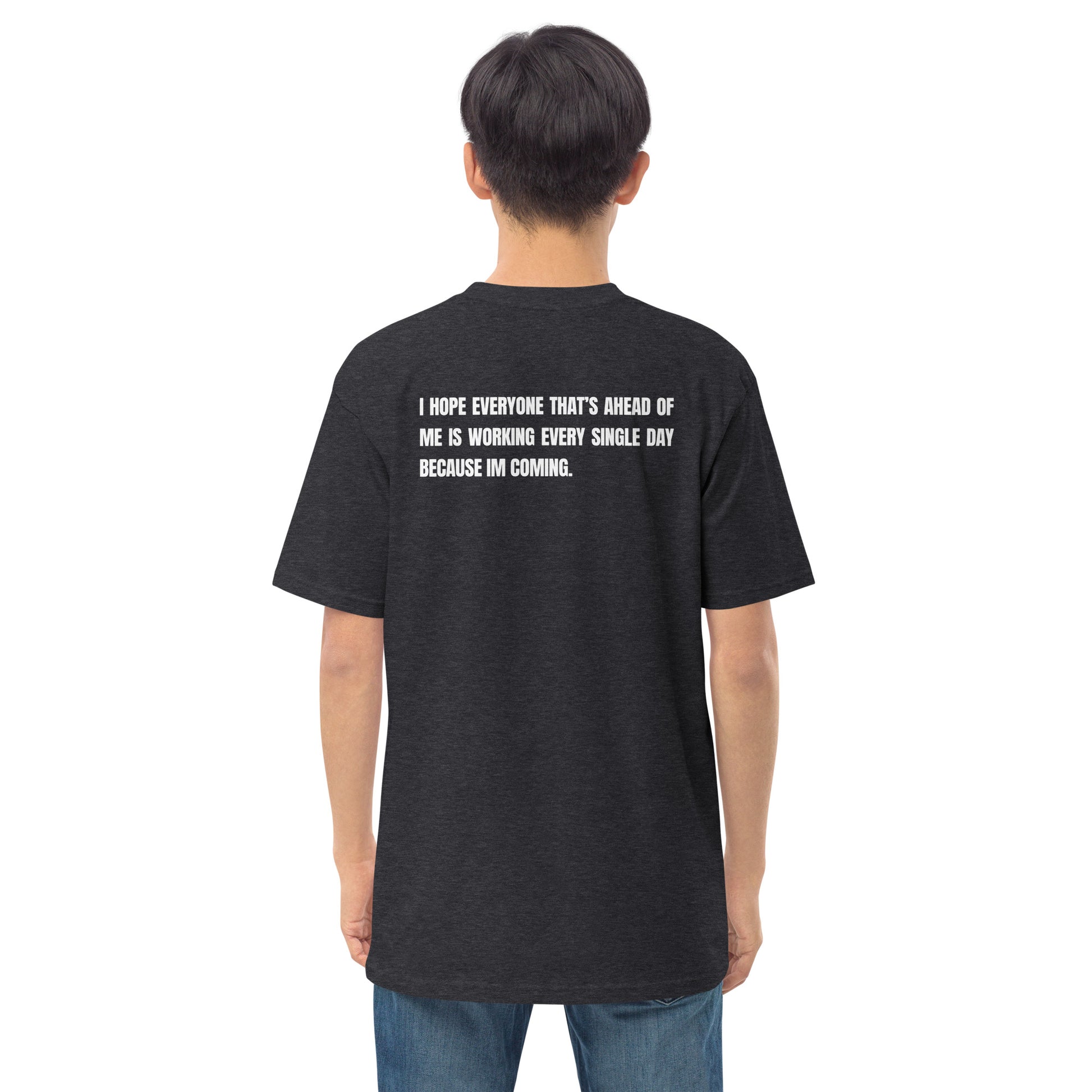 Elevate your outfit with the men’s premium heavyweight tee. The tee has a structured, classy fit and is both durable and soft thanks to its ring-spun cotton material.